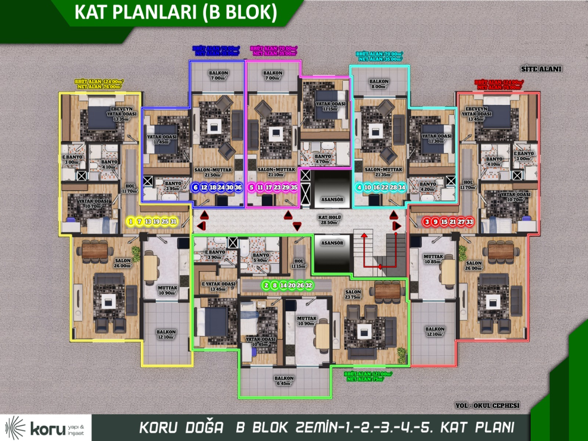 net 35 m2 kullanım alanı,