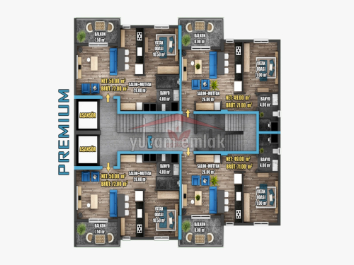 Net 50 m² daire kullanım alanı