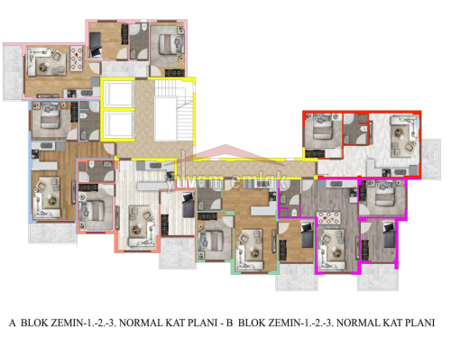 - Daireler, modern ve şık bir tasarıma sahip olup, her detayda kalite ön planda tutulmuştur. Zarif iç mekanlar, kaliteli malzemeler ve estetik bir görünüm sunar.